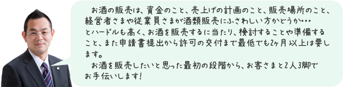食料品の販売に付随して品揃えとして、お酒を販売したいときもありますが・・・。